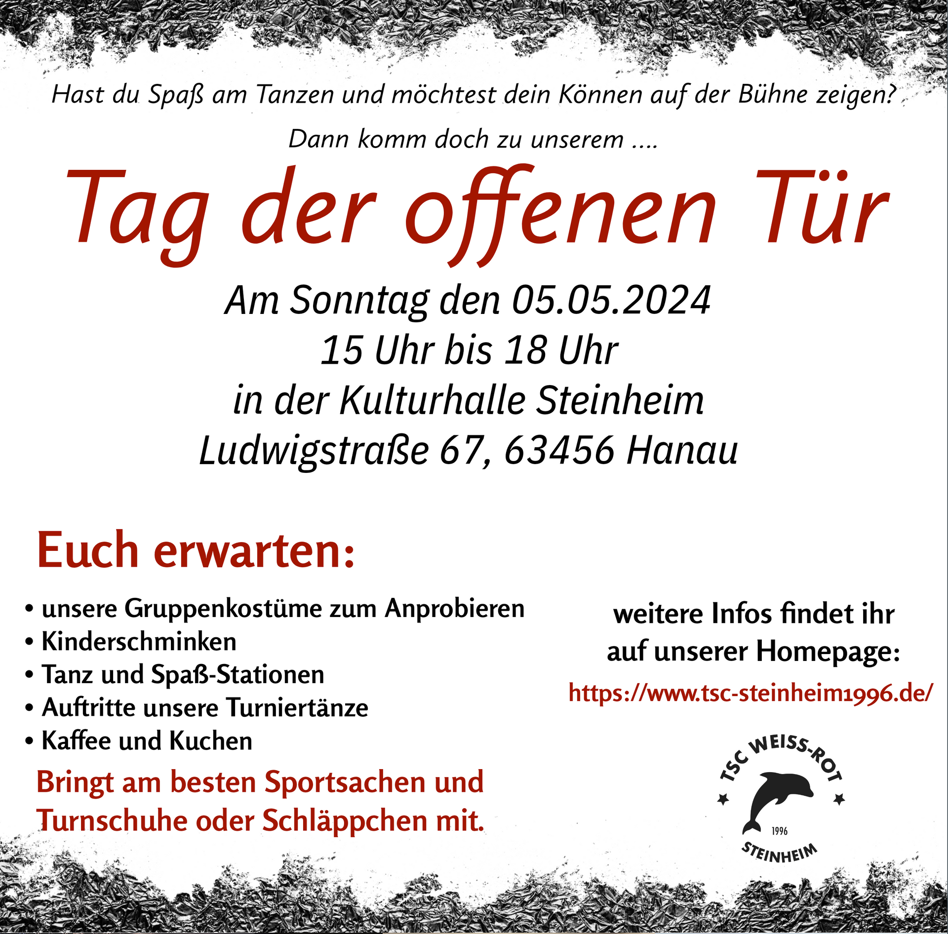 wir laden Euch herzlich zum Tag der offenen Tür beim TSC Weiss-Rot Steinheim ein!